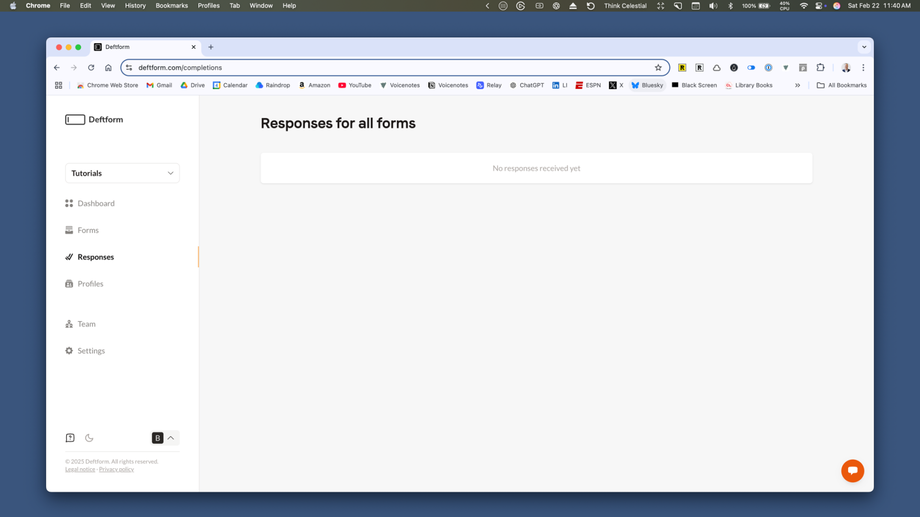 Responses Responses are where you can see data and individual responses to all of your forms in total. Not particularly useful, since the best place to do this is in the Forms section.
